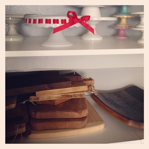 I adore cake stands…you can blame Martha Stewart for that. Watching her show when I was still in school (probably middle school), I remember an episode where she showed a bunch of her vintage cake stands. I think that's when it started. Before I started this blog, I had maybe 2 or 3? Now it's up to 17 but wooden cutting and bread boards outnumber them, thanks to my friends, Todd & Diane, I'm completely obsessed. I need to start a self-help group for them. Who wants to join me?