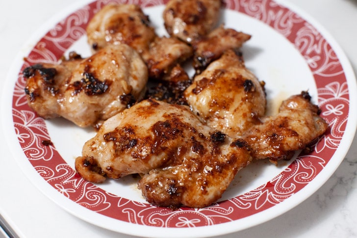 After you get a nice sear on both sides, I put the pan in the oven for a few minutes to ensure the chicken is cooked all the way through. You may need to have it stay in the oven longer if your chicken thighs are pretty thick.