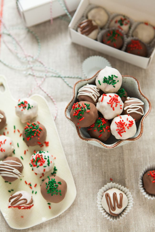 Cookie dough truffles taste just as scrumptious as they sound. These festive treats are beautiful and delicious as a gift for the holidays!