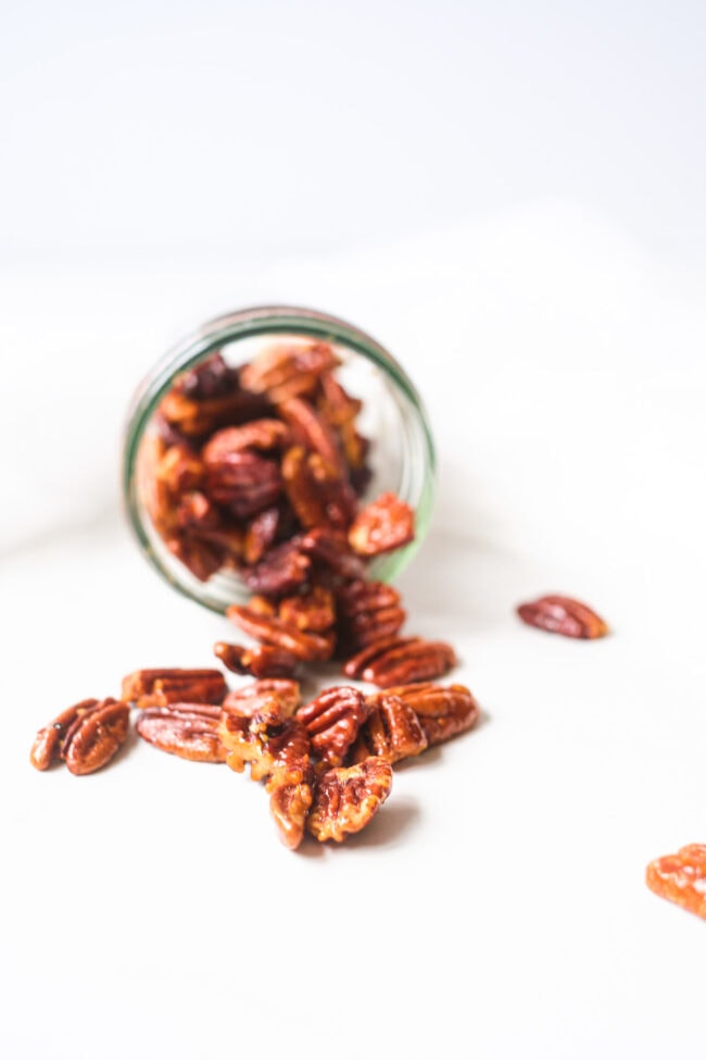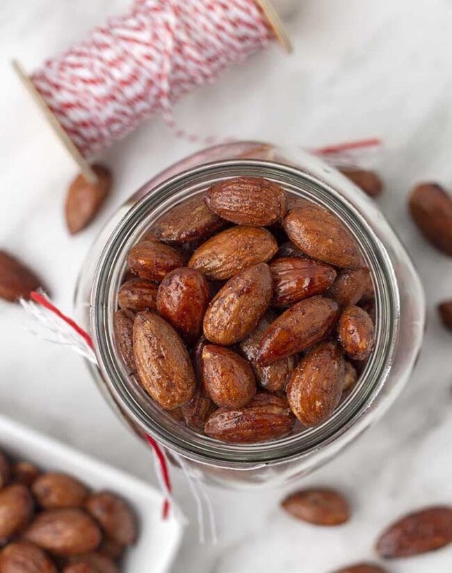 All you need is five simple ingredients to make these crunchy, delicious, perfectly spiced and sweetened almonds. They are great to snack on and serve during the holidays and to give as hostess gifts.