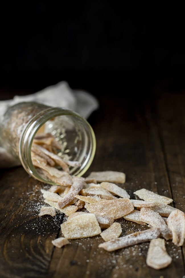 Made with just 2 ingredients, this Candied Ginger recipe is SO EASY to make! It's perfect for Christmas gifts, to use in snack mixes like trail mix, to dip in chocolate for a special treat and to use in baked goods.