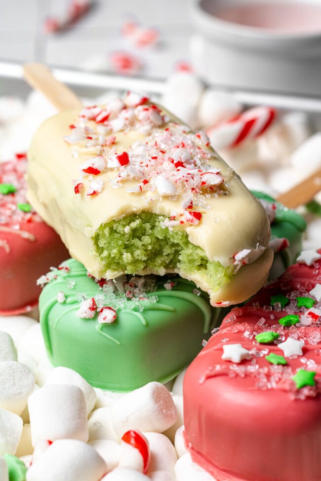 These Christmas Cakesicles are a fun and festive treat for the holiday season! The Christmas decorating ideas are endless and they can even be given as gifts! You can make them completely from scratch or using a box cake mix and store-bought frosting.