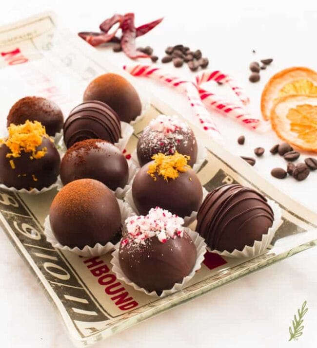 Christmas Chocolate Truffles in five different flavors are perfect for gifting or keeping to yourself. They're easy to make and decadently delicious.