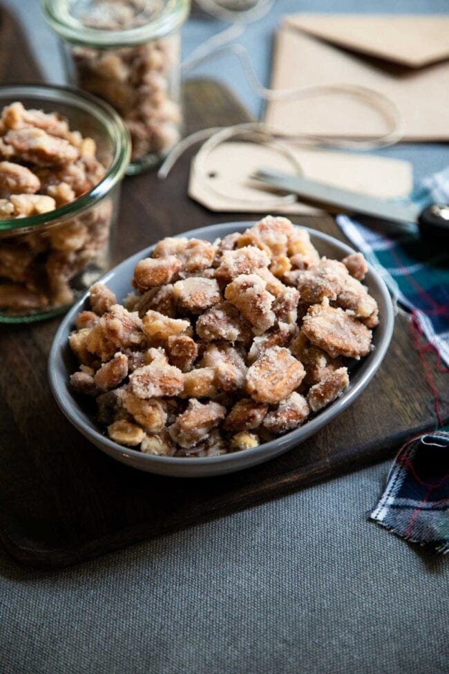 These old fashioned sugared nuts are a delicious treat to enjoy at home, serve at a party, or gift to others. The creamy and cinnamon coating is a welcome taste treat sensation!