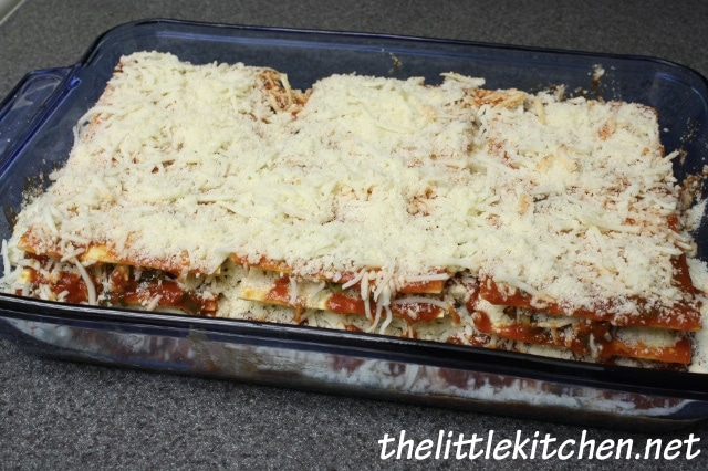 We have made this recipe twice and it has become our favorite lasagna recipe. This recipe is going into the favorites pile and will probably become a part of our regular rotation. The problem is it makes tons, too much for two people to eat. I have brought it into work and my co-workers love it!