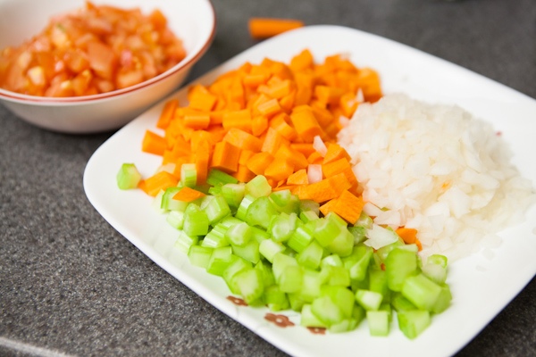 - Heat olive oil in your French oven or large stock pot on medium high heat for 2 minutes. Add carrots, celery, onions, salt and pepper and cook until softened, about 5 to 8 minutes. Add garlic and tomatoes and cook until tomatoes are broken down, about 5 to 8 minutes.