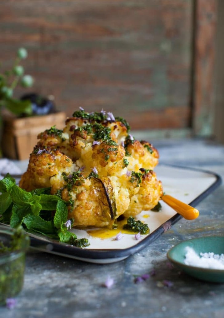 25. Whole Roasted Cauliflower with Minty Chimichurri