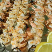 - Skewer the shrimp on metal or wooden skewers (be sure to soak wooden skewers in water ahead of time).